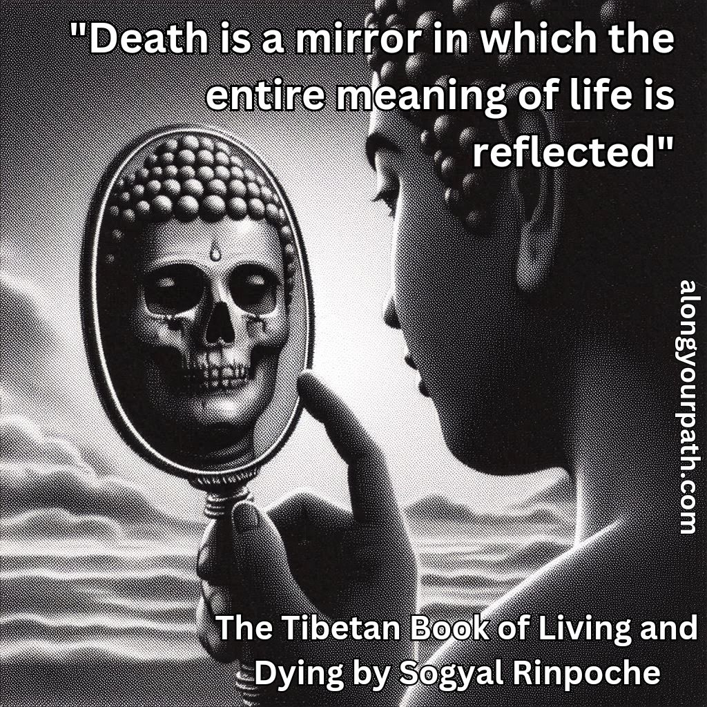Spirituality, Thoughts on... “Death is a mirror in which the entire meaning of life is reflected” from The Tibetan Book of Living and Dying by Sogyal Rinpoche “Death is a mirror in which the entire meaning of life is reflected” from The Tibetan Book of Living and Dying by Sogyal Rinpoche Share this: Click to share on X (Opens in new window) X Click to share on Facebook (Opens in new window) Facebook Like Loading... Related Published by alongyourpath Online publication dealing with Spirituality, Consciousness, Music, and Life. View all posts by alongyourpath